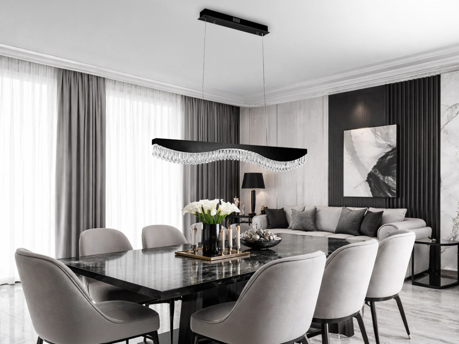 Svietidlo je vyrobené z vysokokvalitného nerezového kovu s prémiovou povrchovou úpravou, doplnené o precízne brúsené kryštály, ktoré zvýrazňujú odraz a lom svetla. Použitá technológia spracovania zabezpečuje dlhodobú stabilitu materiálu a zachovanie jeho estetického vzhľadu.
