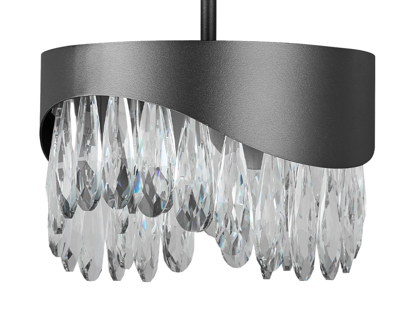 Svietidlo je vyrobené z vysokokvalitného nerezového kovu s prémiovou povrchovou úpravou, doplnené o precízne brúsené kryštály, ktoré zvýrazňujú odraz a lom svetla. Použitá technológia spracovania zabezpečuje dlhodobú stabilitu materiálu a zachovanie jeho estetického vzhľadu.