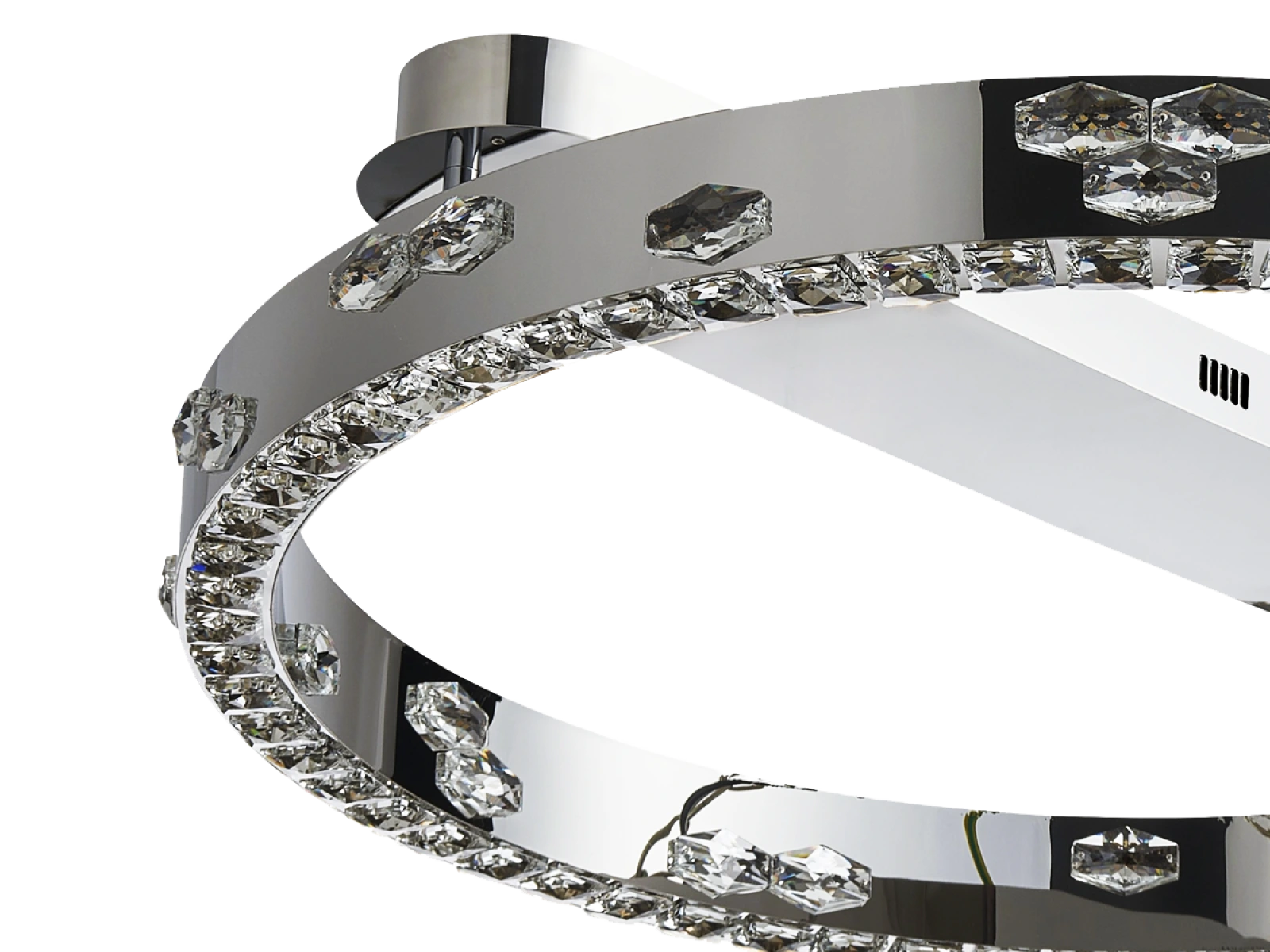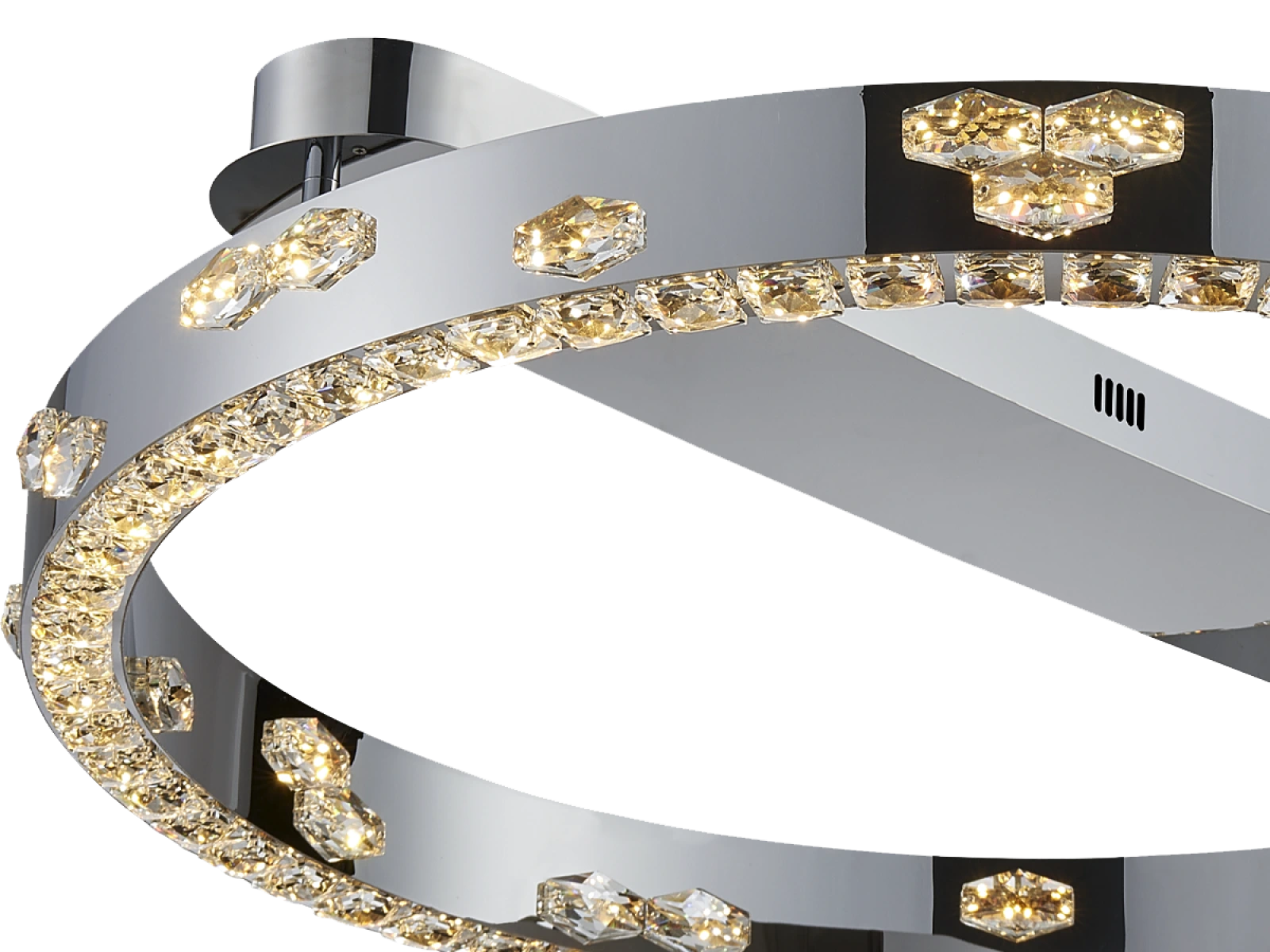 Svietidlo je vyrobené z vysokokvalitného nerezového kovu s chrómovou povrchovou úpravou, doplnené o precízne brúsené kryštály, ktoré umocňujú odraz a lom svetla. Použitá technológia spracovania zabezpečuje dlhodobú stabilitu materiálu a zachovanie jeho estetického vzhľadu.