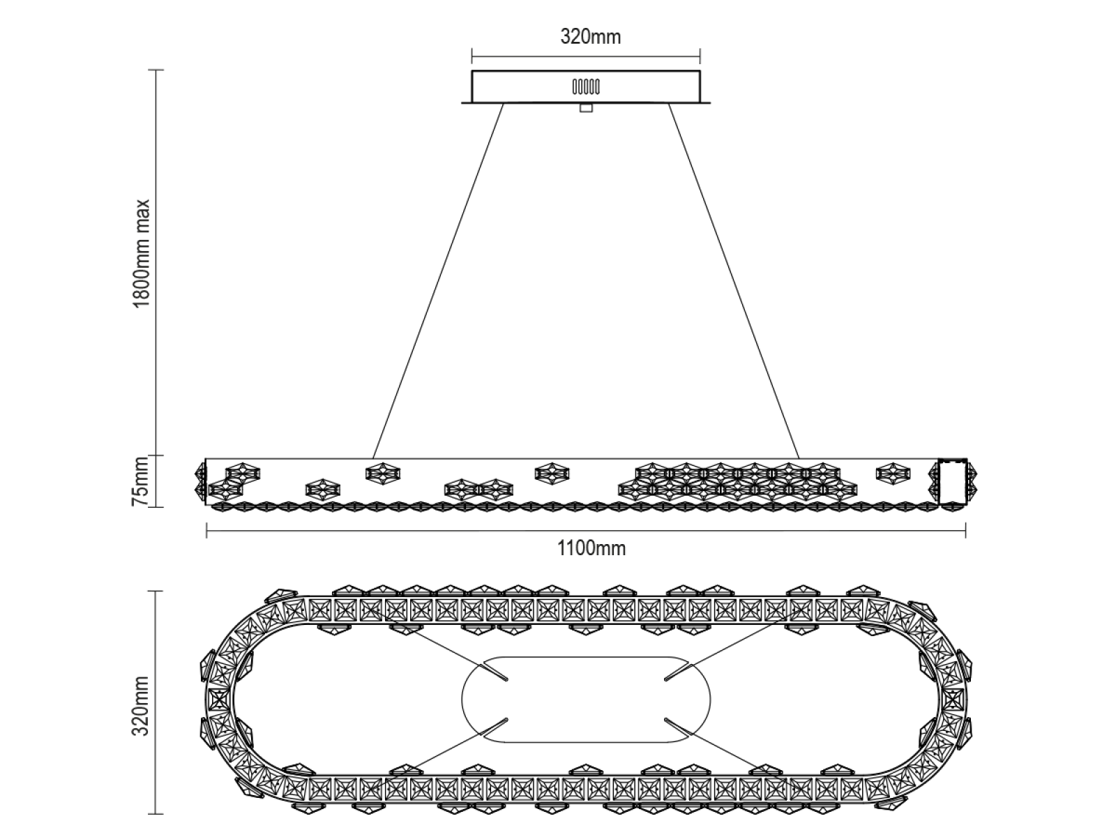 CLARIS závesný krištáľový luster 1100x320 - V30003