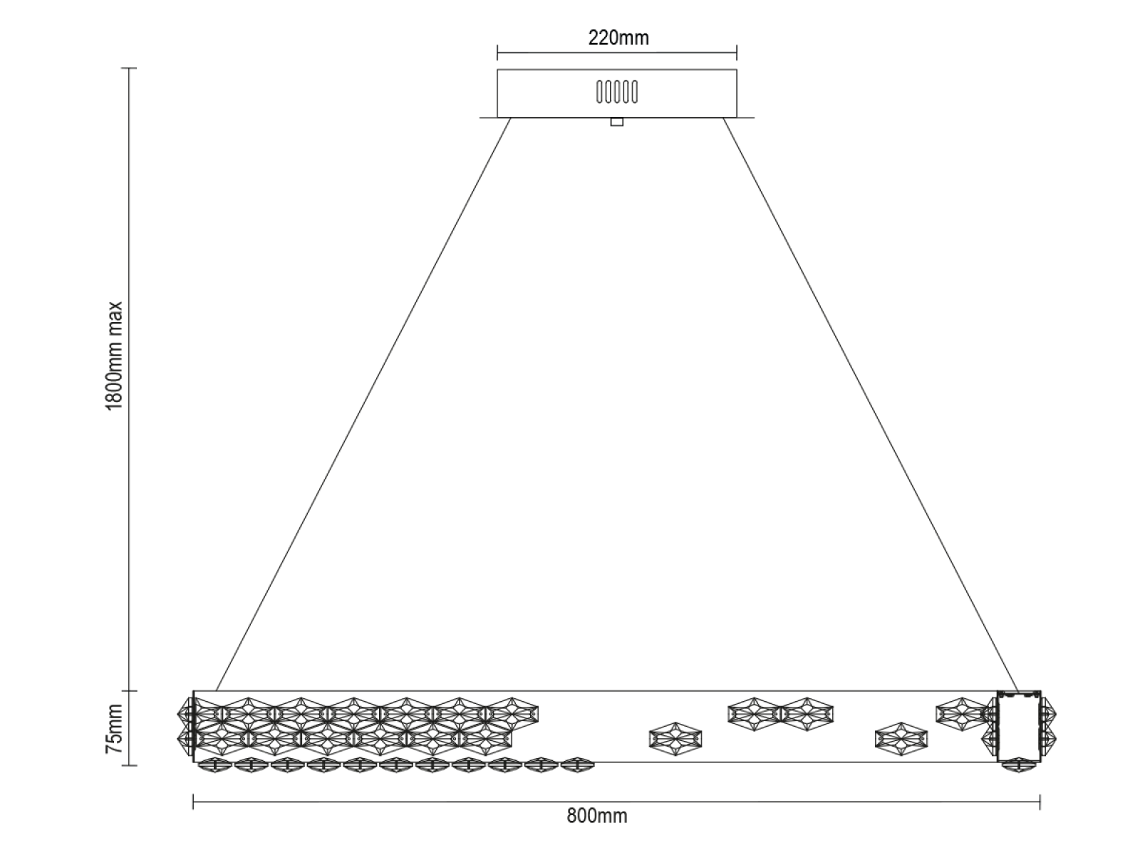 LED závesné svietidlo značky VIZARDI zo série CLARIS zaujme elegantným tvarom a luxusnými kryštálovými detailmi, ktoré vytvárajú pôsobivé svetelné efekty. Vďaka modernému a nadčasovému dizajnu je ideálne ako doplnkové osvetlenie do obývačky, pracovne, jedálne, chodby alebo spálne.