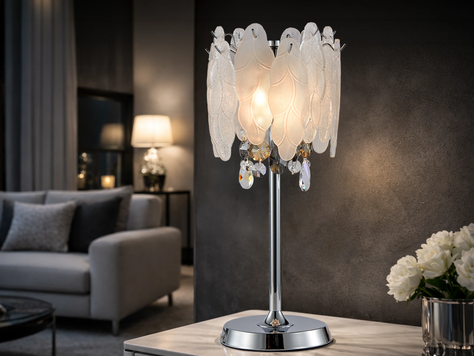 Stolná lampa série GURU značky VIZARDI predstavuje harmonické spojenie elegancie, jemného luxusu a moderného dizajnu. Vďaka svojmu výraznému, no zároveň vyváženému vzhľadu sa prirodzene začlení do obývacej izby, jedálne, spálne aj reprezentatívnych priestorov, kde vytvára príjemnú a štýlovú atmosféru.
