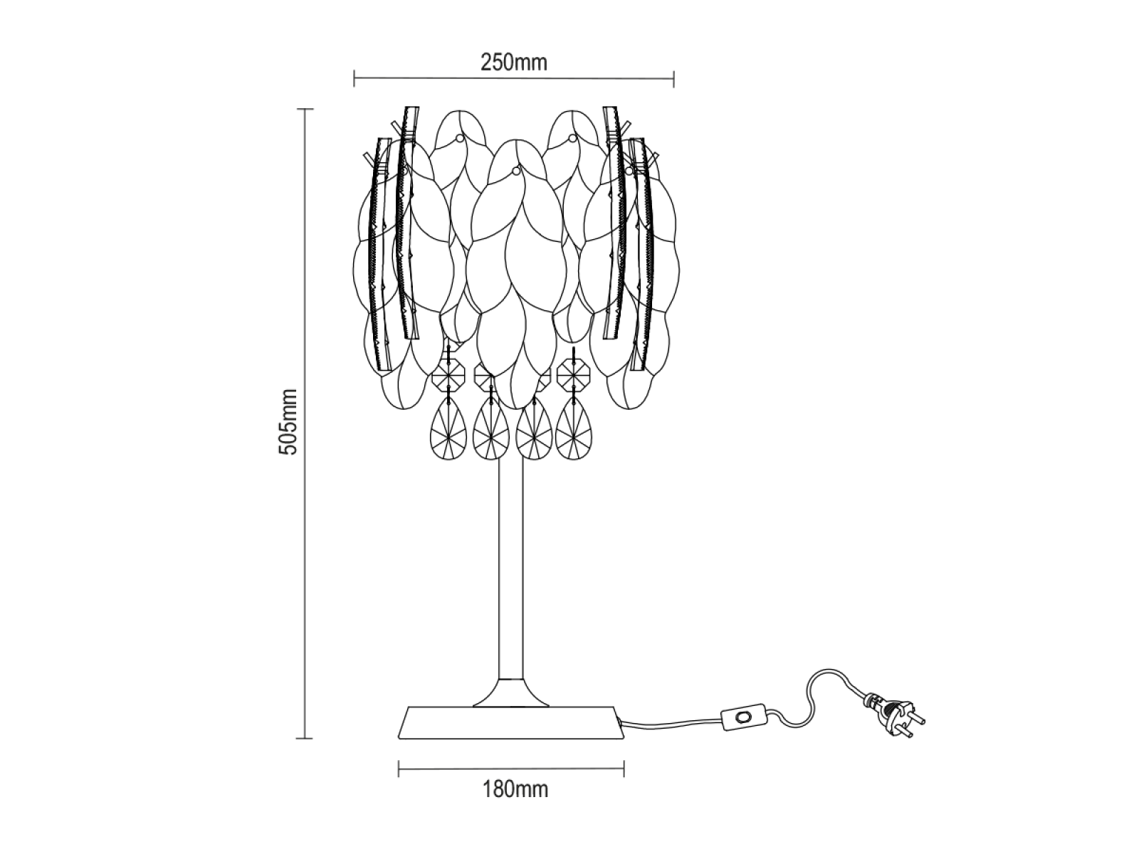 Kovová konštrukcia v kvalitnej povrchovej úprave je doplnená o sklenené a brúsené kryštálové prvky, ktoré jemne rozptyľujú svetlo a vytvárajú decentný svetelný efekt. Svietidlo pôsobí vkusne a nadčasovo, s dôrazom na detail a kvalitné spracovanie.