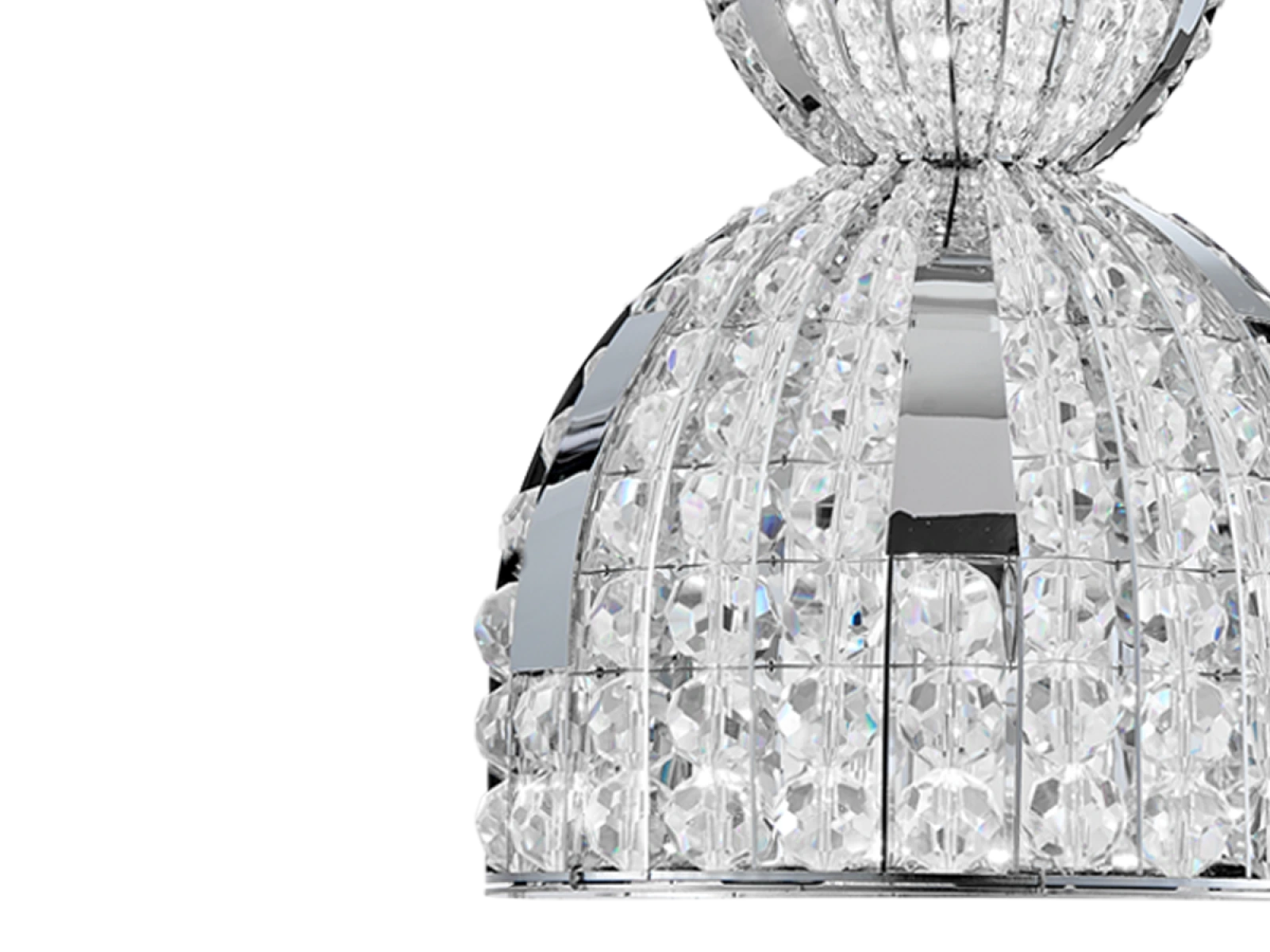 La construction est en acier inoxydable et complétée par des cristaux taillés qui assurent une réfraction et une réflexion intenses de la lumière. Grâce à la qualité de fabrication, le luminaire conserve son aspect esthétique et sa stabilité, même en cas d'utilisation prolongée.