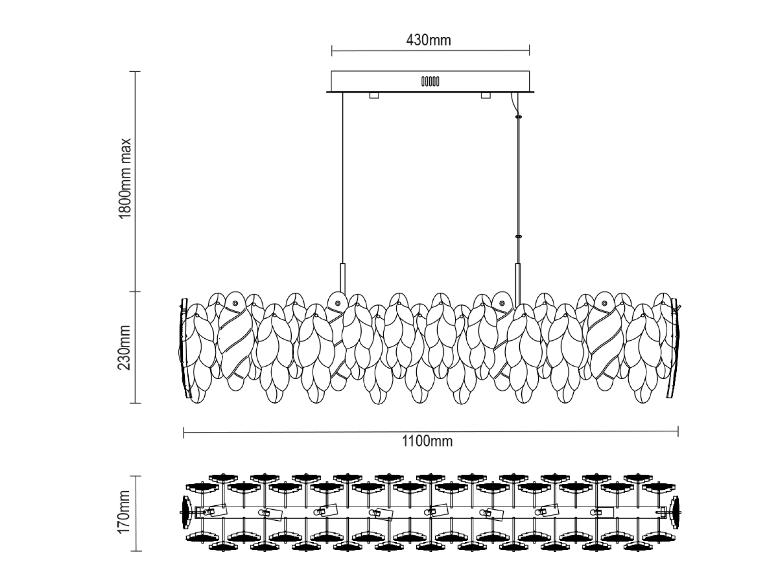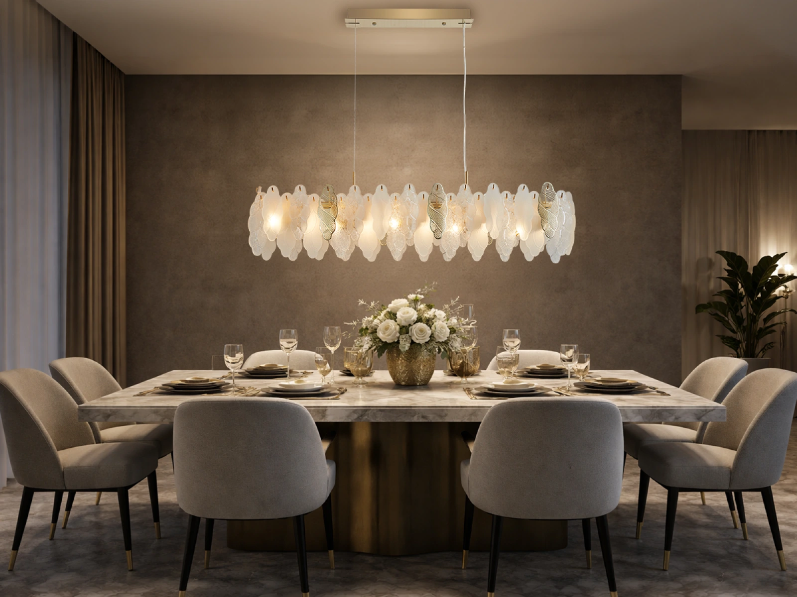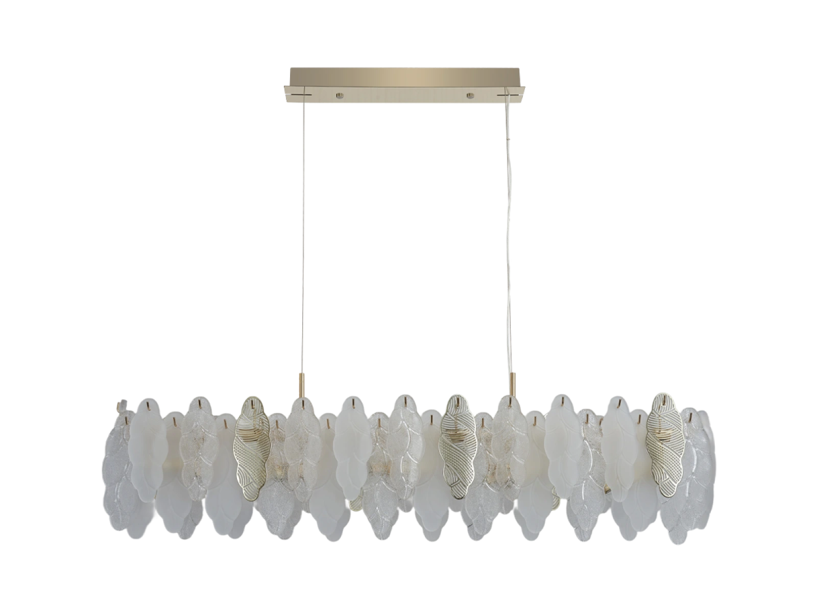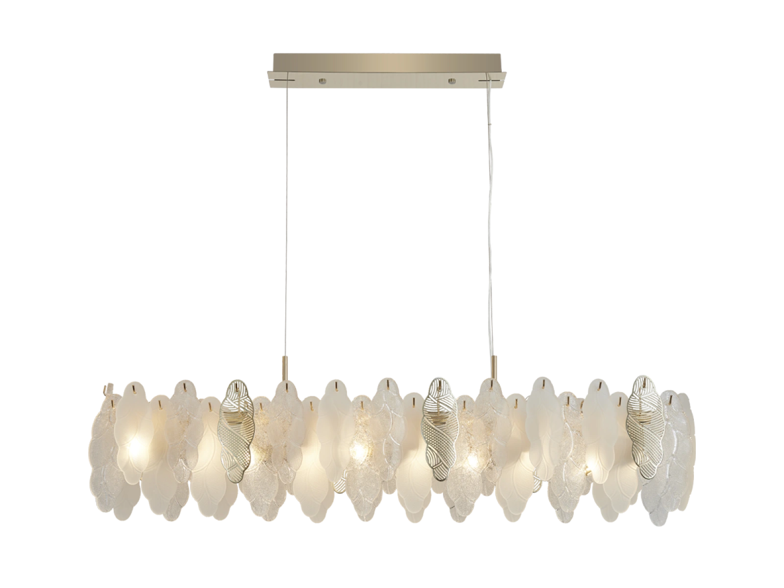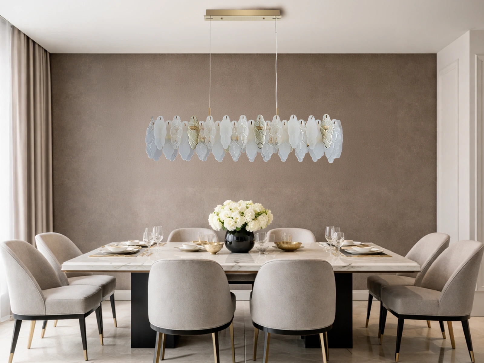 La structure fine des éléments en verre combinée à des détails métalliques décoratifs souligne le caractère luxueux et sophistiqué de cette collection.