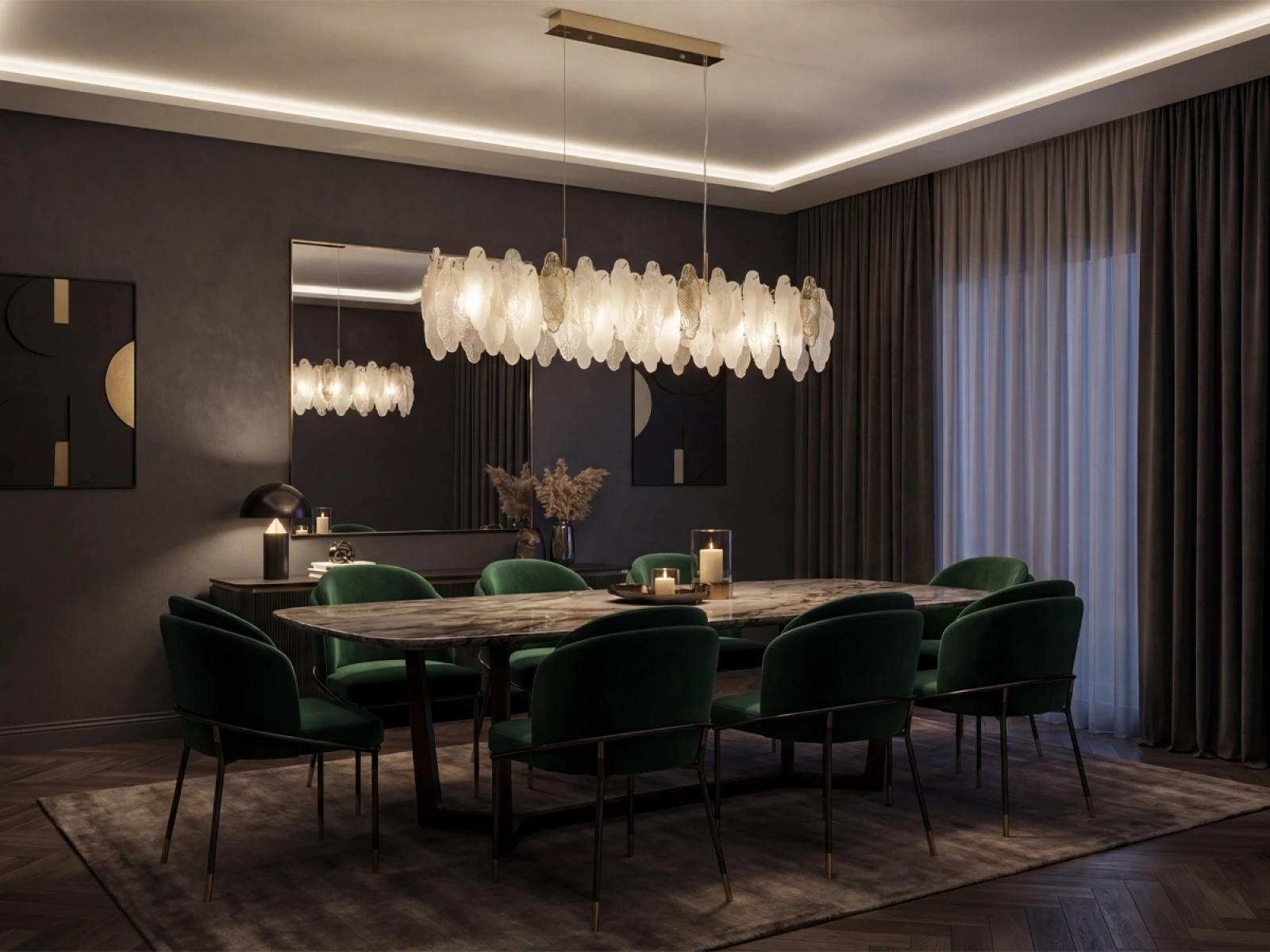 Le luminaire suspendu CHOREO de VIZARDI est un éclairage design élégant au caractère décoratif distinctif. La disposition précise des éléments individuels crée une composition harmonieuse avec un effet de lumière unique et ajoute un accent visuel distinctif à l'espace. Le luminaire convient au salon, à la salle à manger, à la chambre à coucher et aux intérieurs représentatifs.