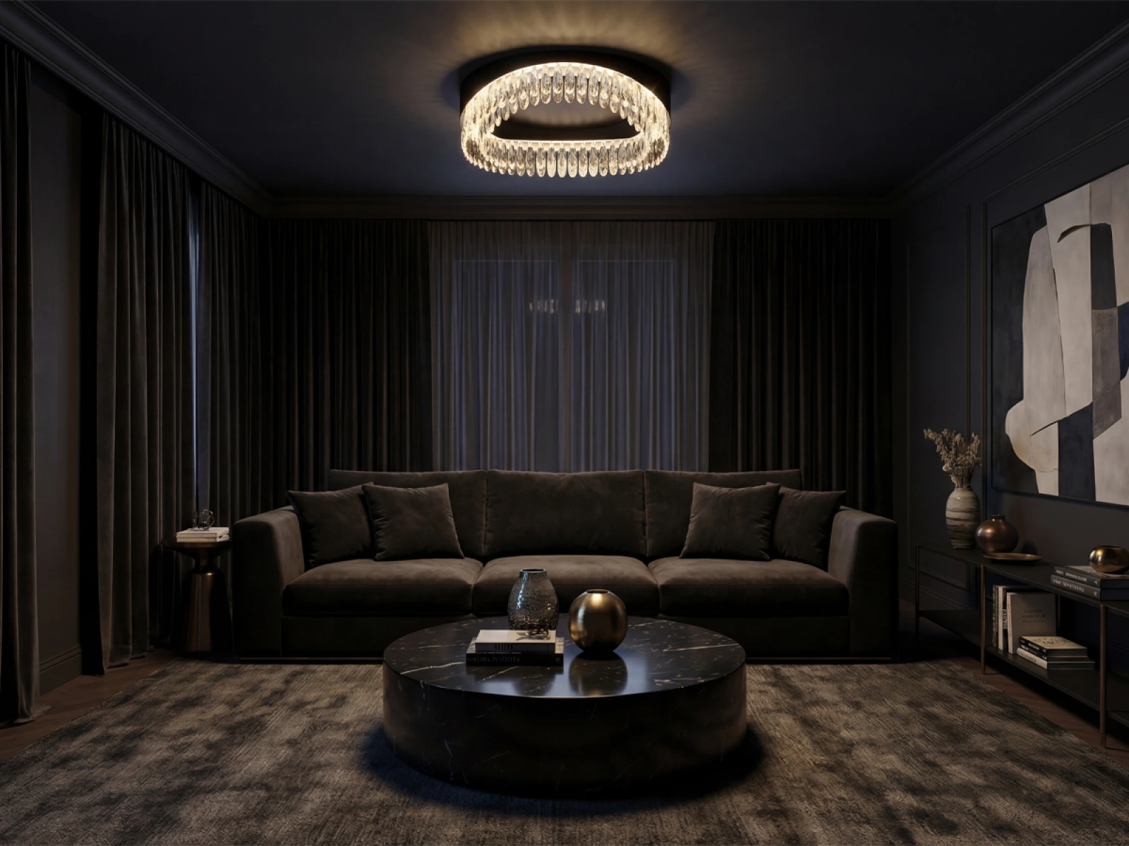 Le luminaire est fabriqué en acier inoxydable de haute qualité avec une finition haut de gamme, complété par des cristaux taillés avec précision qui améliorent la réflexion et la réfraction de la lumière. La technologie de traitement utilisée garantit la stabilité à long terme du matériau et la préservation de son aspect esthétique.
