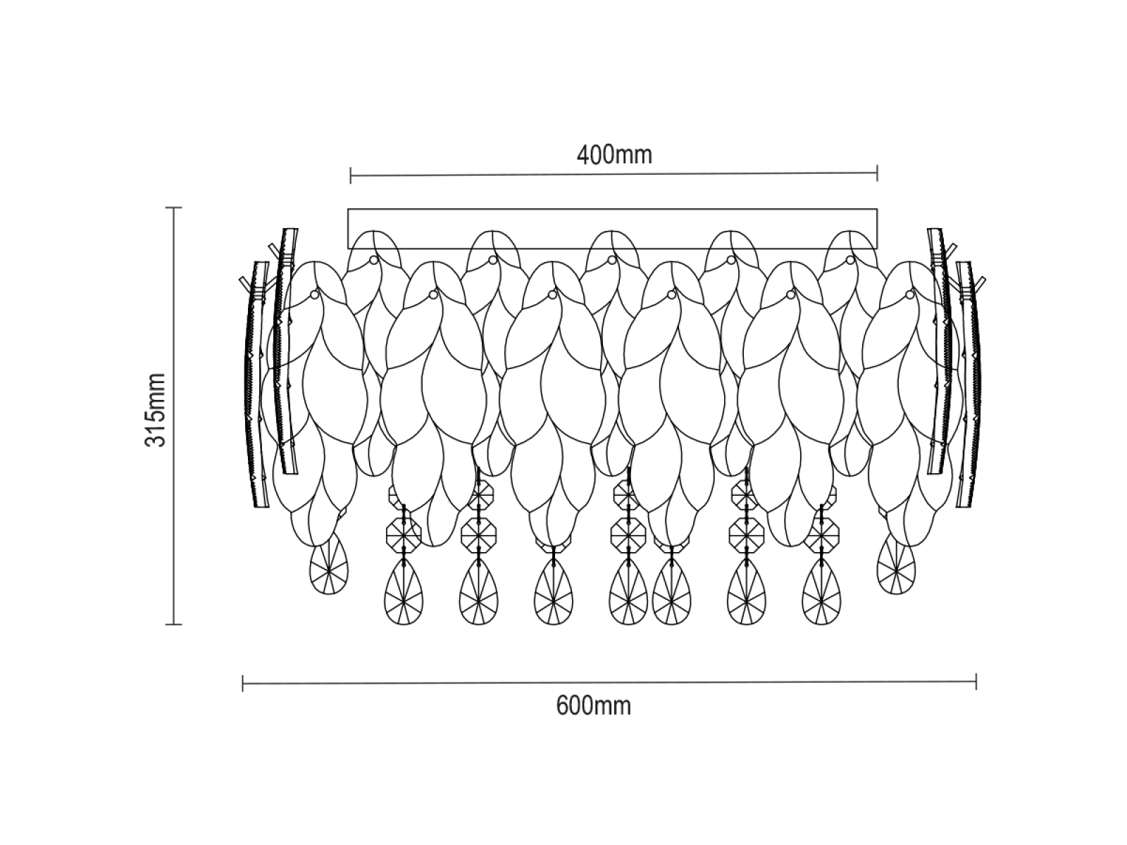 combinaison de métal et d'éléments en verre et en cristal taillé
