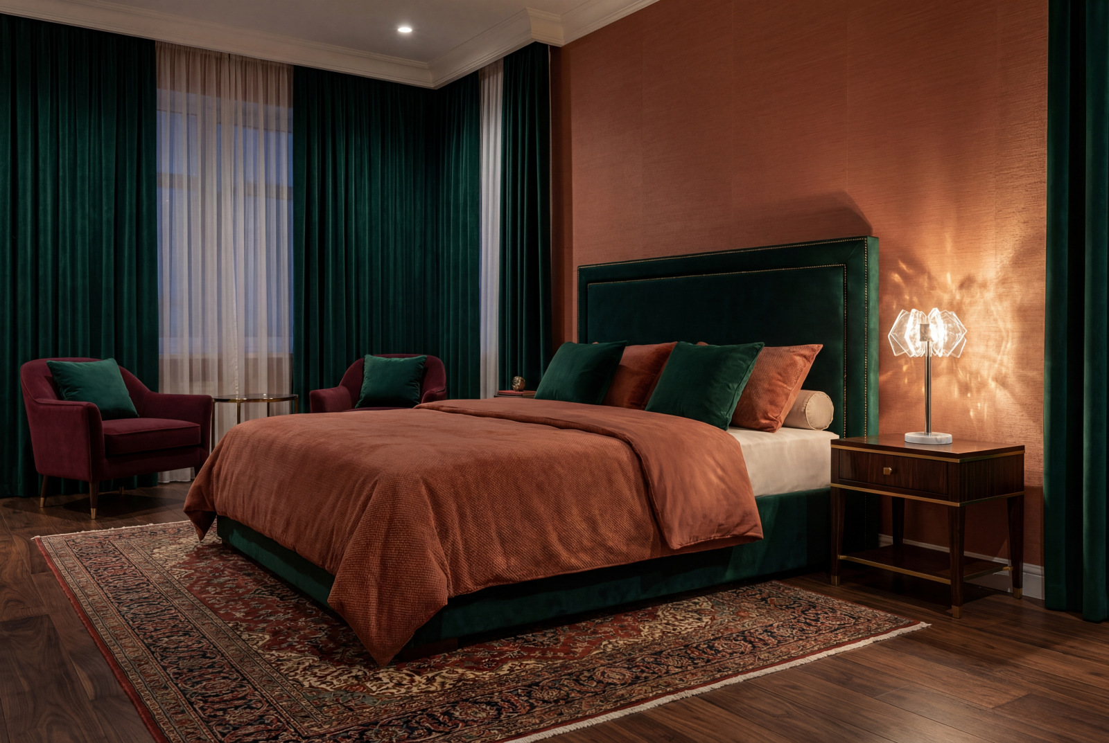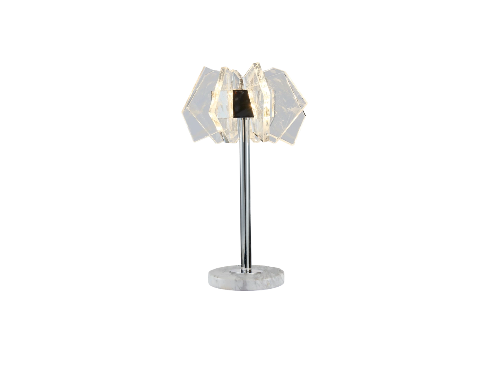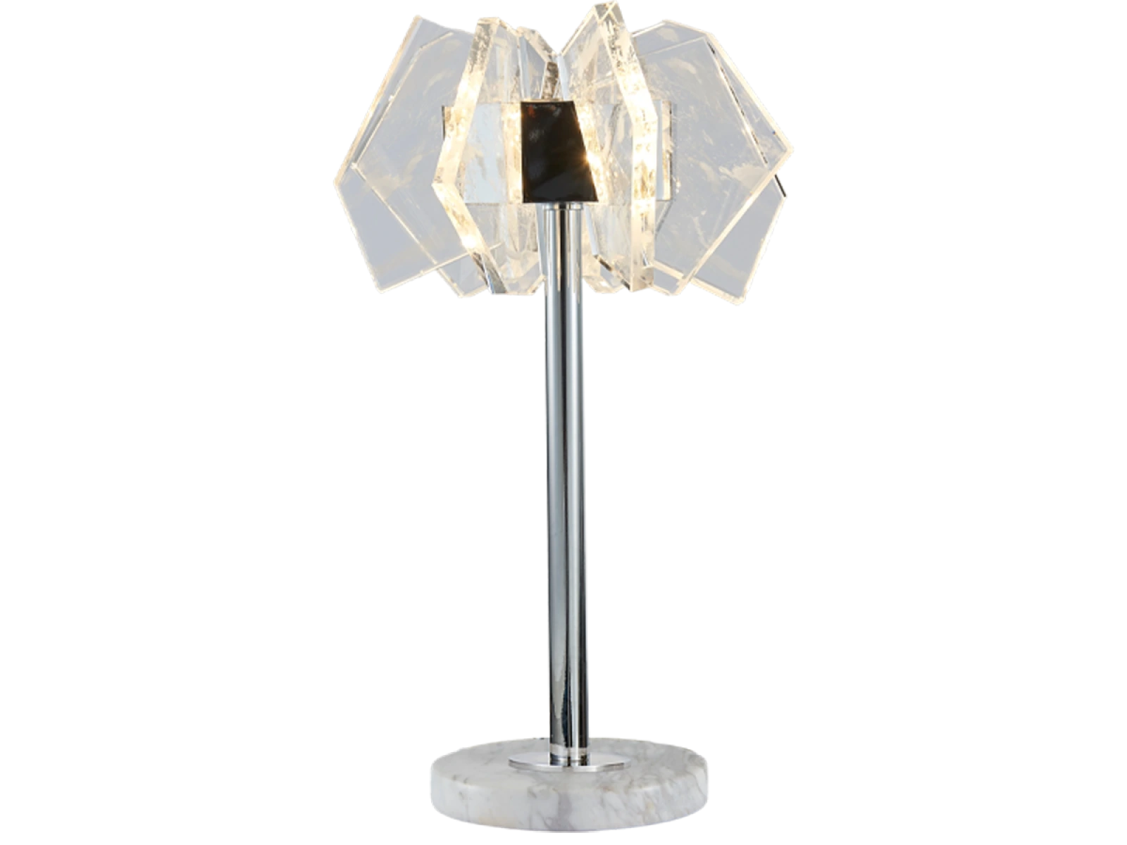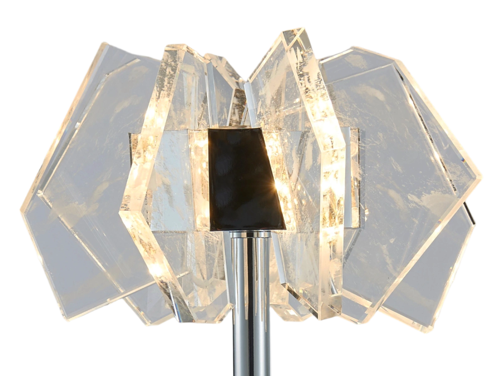 Konštrukcia je vyrobená z kvalitnej ocele s chrómovou povrchovou úpravou a doplnená o originálne usporiadané, precízne brúsené krištáľové prvky, ktoré zabezpečujú intenzívny lom a odraz svetla. Výsledkom je luxusná svetelná atmosféra s výrazným dekoratívnym efektom, ktorá podčiarkne charakter moderného aj reprezentatívneho interiéru.